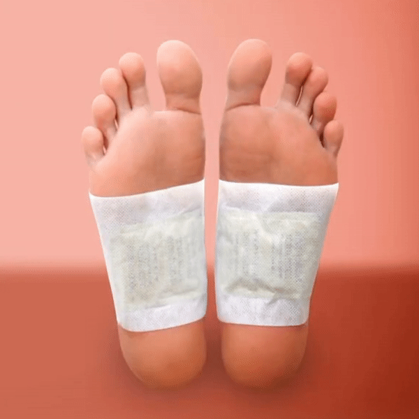 - Lipiti un plasture (cu partea scrisa) pe materialul adeziv, puneti plasturele pe talpa piciorului si fixati-l bine. Pentru cel mai bun efect plasturele trebuie aplicat inainte de culcare, pentru 6-10 ore;